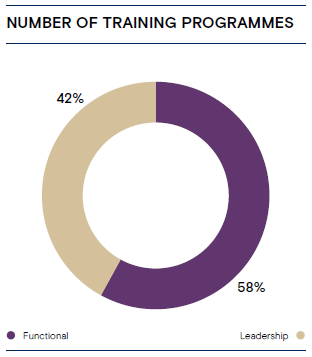 CDB provides a diverse range of customised learning opportunities, empowering employees to learn in a manner that suits their preferences, timing, and location. The learning programmes focus on technical skills, broader behavioural competencies, and sustainability. During the year under review, several talent development programmes were executed as follows: